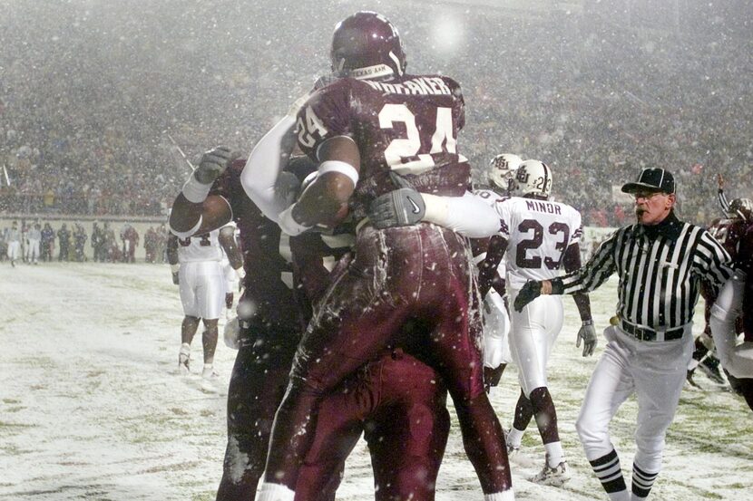 Over 36,000 fans braved the elements to witness the Mississippi State Bulldogs battle the Texas A&M Aggies in an overtime thriller. This game had everything you would expect from a wacky weather match-up: slips, trips, stumbles, mishandled snaps, poor kicking, and of course, 84 combined points. This game would be remembered in college football lore as the “Snow Bowl”.