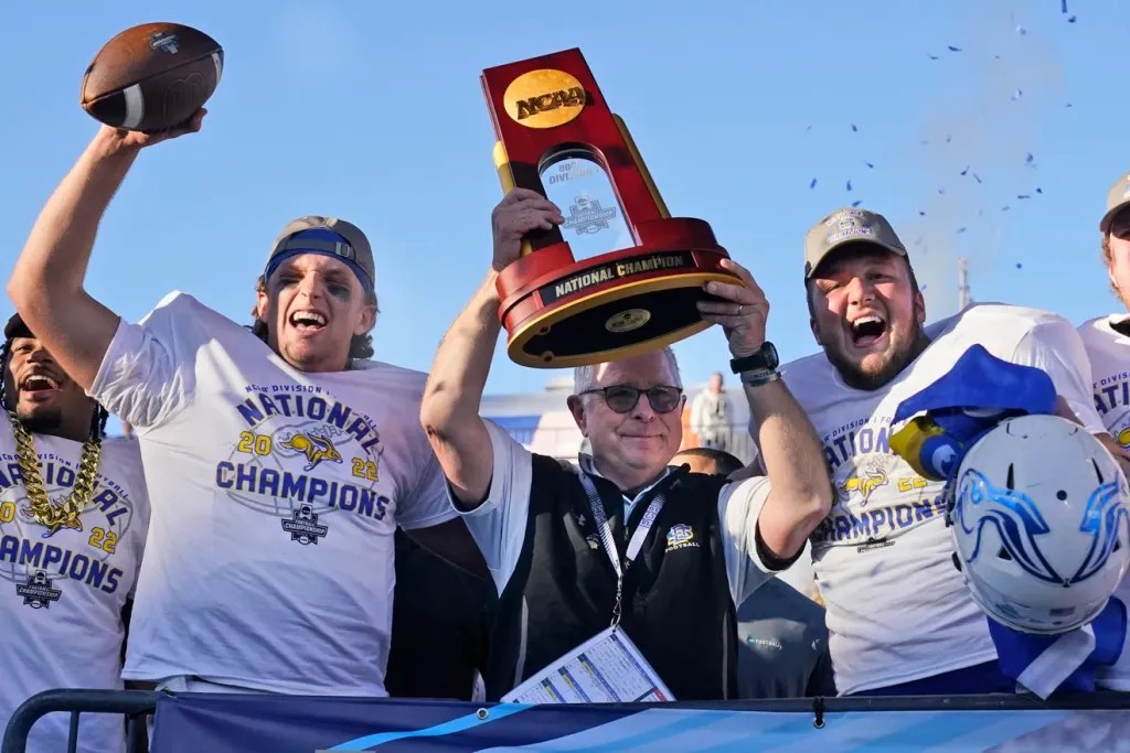 North Dakota State’s only defeat in an FCS championship game was to the South Dakota State Jackrabbits on January 8th, 2023. The Jackrabbits beat the Bison 45-21. SDSU repeated as champions the following year, taking down the Montana Grizzlies 23-3. After losing to Iowa 7-3 in Week 1 of 2022, the Jackrabbits reeled off 29 consecutive victories. Their next loss against an FCS opponent would not come until October 19th, 2024, when they lost 13-9 to the Bison in Fargo.